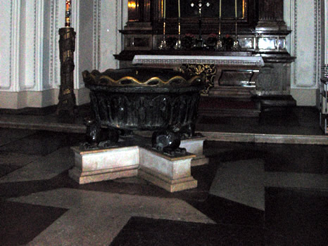 さて、ここが目的の洗礼盤。ここザルツブルクで生まれたモーツァルトは、この洗礼盤で洗礼を受けた。