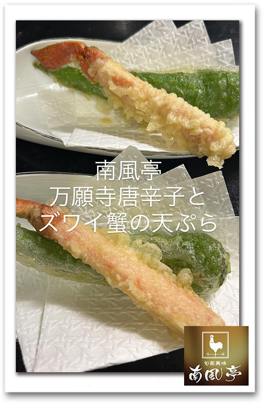 万願寺唐辛子とズワイ蟹の天ぷら 🍀お2人様から2日前まで ご予約はお電話にてお願いします🍀