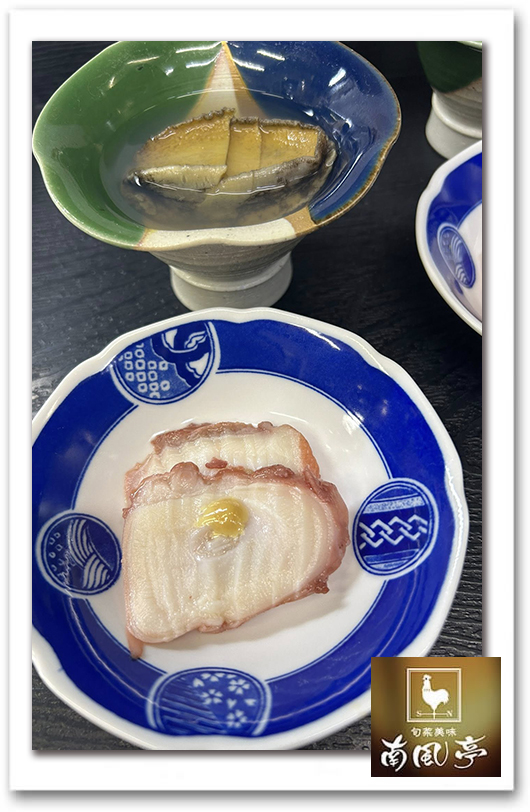 鮑の酒蒸しと蛸柔らか煮 🍀お2人様から2日前まで ご予約はお電話にてお願いします🍀