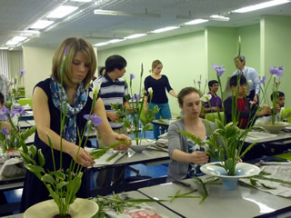 「一つ一つの花をよく見て、向きを考え、バランスを取って」そんな説明がされた。受講者は10人くらいだったような?