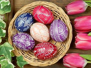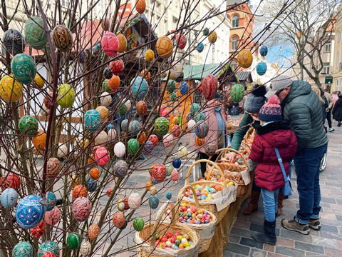 カラフルな卵の飾りは長い冬を過ごし春を迎えたよろこびを表しているのだろう。