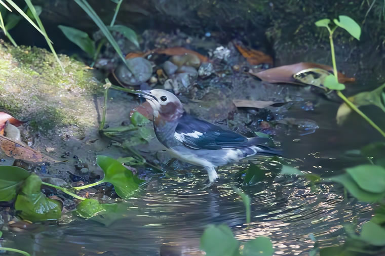 木の実を十分食べると、水飲みに水辺に降りてきます。
