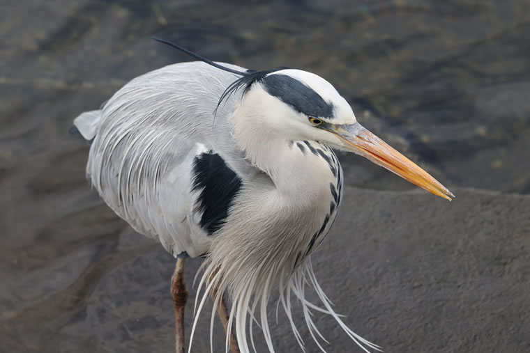 歩道の柵から下を覗くと、アオサギが獲物を狙っていました。