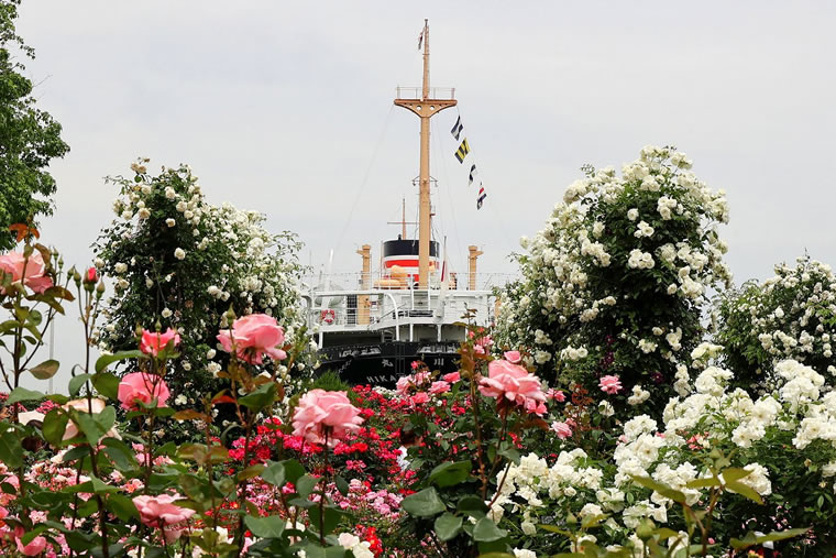 最後にもう一度、山下公園の薔薇の写真の定番、氷川丸とのコラボ写真です。