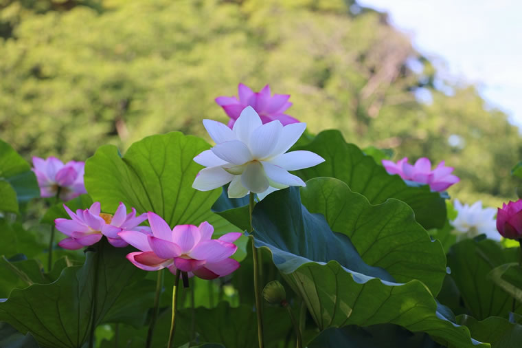 泥の中から清らかな花を咲かせることから、徳の高い花として、三溪園の創設者・原三溪がとりわけ愛した蓮。