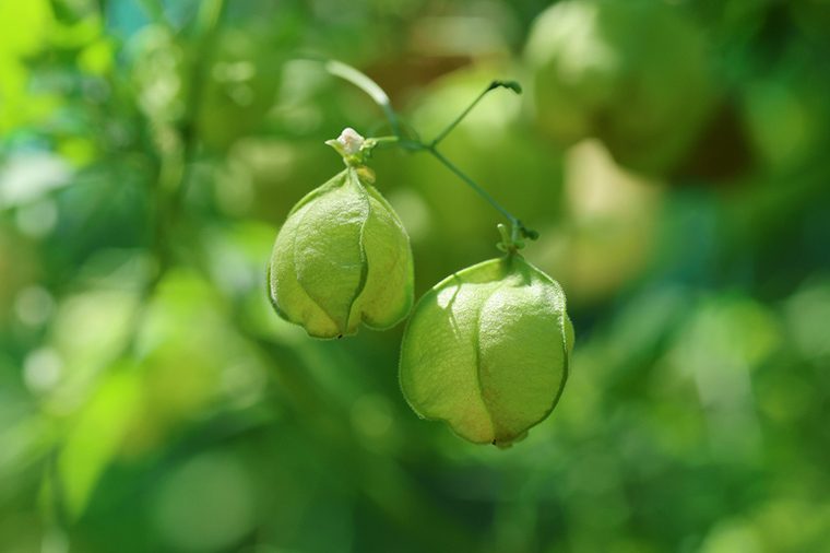 花を観賞するためよりむしろ、風船状の果実を見て楽しむために栽培されている植物のようです。