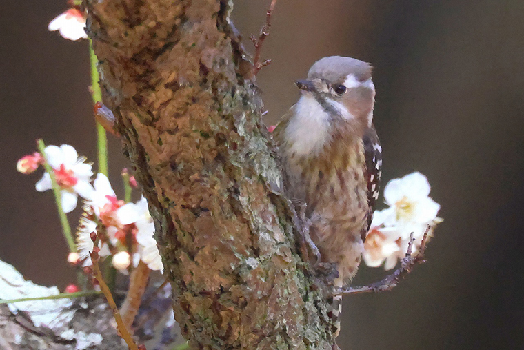 キツツキの仲間で一番小さい“コゲラ”が、開花し始めた桜の枝に留まってくれました。