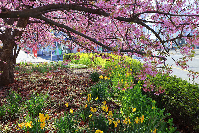 三浦海岸駅前の河津桜と菜の花です。