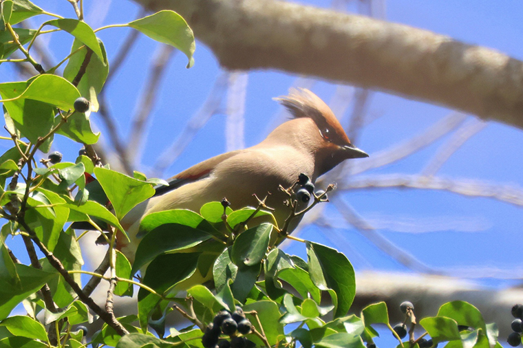 今年は、この近所の公園のヤドリギは、雨不足のせいで実があまり大きくならず、レンジャクにとって魅力が薄かったようです。