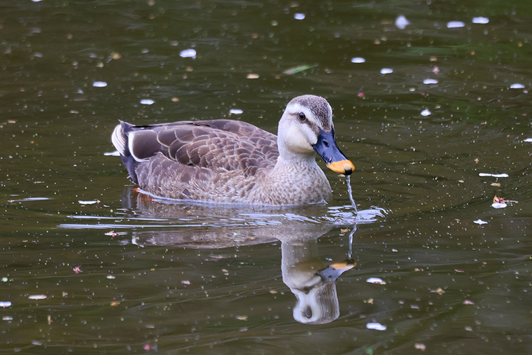 ソメイヨシノの花びらがたくさん、池の表面を漂っていました。