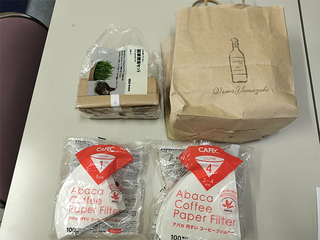 ・コーヒーフィルター(1カップ用) 1袋 ・同(2~4カップ用) 1袋 ・猫草栽培セット 半袋 (2つのウチ1つは使ったみたい)