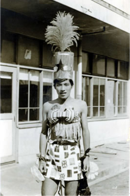 昭和46(1971)年高校2年の時の文化祭は、10月9、10日が一般公開でしたが、先だって8日(金)には仮装行列がありました。仮装して福島市内を練り歩くのです。