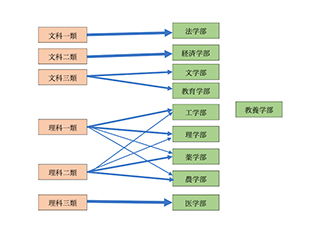 その時点で何学部何学科に行きたいというビジョンはなく、2年前期終了時に進学振分け(定員20人の学科に30人が希望すれば、教養の時の試験点数で上位20人が進学、といった具合)まで決めればよいかと。