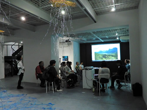 石倉氏の芸術人類学、神話学の研究と、丸山の海外での滞在制作は、どちらもが、今回のテーマ「地球の表面を歩き、触れ、表現すること」です。