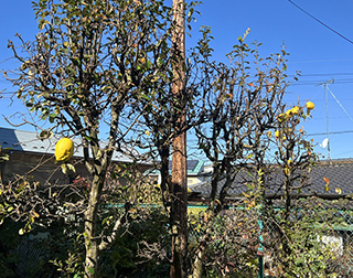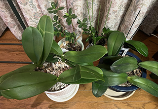 母の家では、冬に向かって寝具や衣類の更新を手伝ったり、ぼとぼと落ちていたカリンの実を拾い集め、柿をもぎ、いただいたままになっていた胡蝶蘭の白花と青花を鉢に植え替えた。