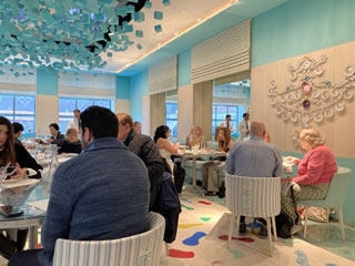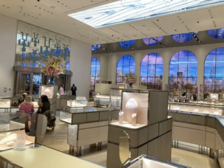 映画のオードリーヘップバーンは、5番街のティファニー本店前でクロワッサンを齧るだけなんだけど、今は本店ビル6階のBlue Box Caféで食事することができる。