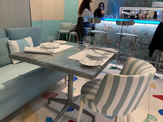 まずは1階の宝石売場をひやかし、エスカレーターで各階の展示を眺めて6階・Blue Box Caféへ。