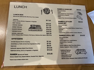 今回の旅行はとにかくお金を使わない、をモットーに食事も贅沢をしないようにしていたけど、ここだけは例外。 食器や調度品を含めた店の雰囲気を十二分に楽しんで、「ローバ(老婆)の休日」を満喫。 貧乏旅行なので、超高いと聞いていたニューヨークのラーメンはやめようかと思ってたけど、せっかくなので一度だけ食べてみようとホテル近くで見つけた、SUZUKI SHOKUDO ~RAMEN&SUSHI BAR~へ。