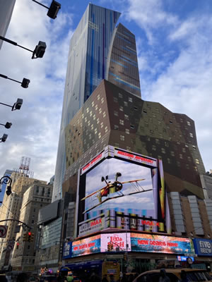 地下鉄のアプリ、NYC Subwayを必死で調べ、なんとか隣駅のQueensboro Plazaから7番線に乗り換えて42 Street駅まで行き、Lena Horne Theatreの場所を確認後、世界の交差点、大みそかのカウントダウンで有名なTimes Square周辺を散策。