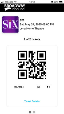 ネットで検索し、あっとニューヨークというサイトで5月24日(土) 08:00PMからLena Horne Theatreでの「SIX」を予約。