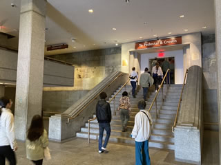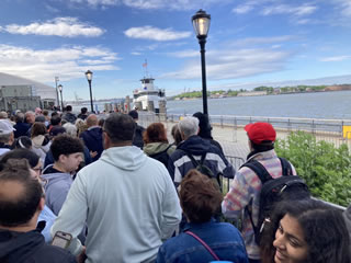 ミュージカルと同じあっとニューヨークでチケットを予約。 王冠まであがれるチケットは3か月前にすでに完売していて台座までのチケットを2枚ゲット。 5月24日朝、地下鉄を乗り継いでマンハッタン島の南端・バッテリーパークへ行き、9時発のフェリーで出発。