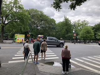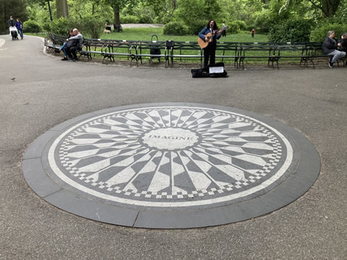 セントラルパークはかなり広いので、ストロベリーフィールズの周辺を回ることにし、地下鉄72st駅からパーク内に入って、ジョン・レノンがかつてオノヨーコと住んでいたダコタ・アパート前の広場にある記念碑を見つけました。 72st駅からパーク内に入り・・