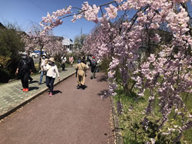 写真は、Storyスナップの新章「日中線しだれ桜並木の旅」から、見事な枝垂れ桜のプロナード。元々はローカル鉄道の線路があった場を造り変えて大成功!
