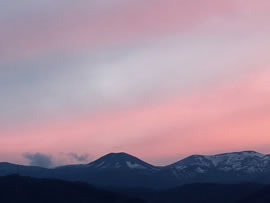 写真は、タケヒコオーナーのコンビニ・トレンドⅡから、遠く磐梯山を眺望できる猪苗代湖南岸の秋山浜キャンプ場。この日はとても冷え込む夜になり・・(笑)