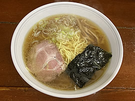 写真は、岸波版ラーメン道2から、福島市新町で開店した謎のラーメン屋「のみくいだいじょうぶ」のラーメン。ここのマスター『深夜食堂』のあの人にソックリ!?(笑) 新・僕達のラーメン道2「のみくいだいじょうぶ」