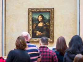 写真は、謎のおじさんアンブレラあつしの「風に吹かれて」より、ルーヴル美術館の「モナリザ」。この直後、老女に化けた男がケーキをぶつける事件が発生。 風に吹かれて「モナリザの微笑」