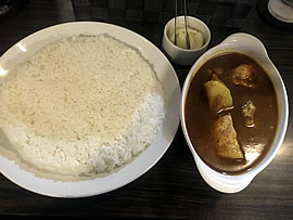 写真は、金曜日のカリスマ彰"ファッションの達人2"より「横浜ボンベイ 高田馬場店」のインドカレー。脊髄反射で「大盛」と言ったら、こんなご飯が出てきた!