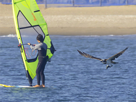 写真は、瞬間の魔術師T.sakumaの野鳥ギャラリー2より「ミサゴ」。海岸で飛翔するミサゴを目で追いかけていくと、ちょうどサーファーの後ろを通過するタイミングが♪ 野鳥ギャラリー2「1月に会った鳥たち」