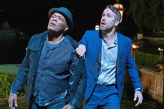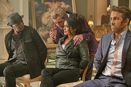 『デッドプール』シリーズのライアン・レイノルズ(マイケル役)と『アベンジャーズ』シリーズのサミュエル・L・ジャクソン(ダリウス役)に加え、前作ではチョイ出演のダリウスの妻ソニアが堂々チームの中心となって登場。