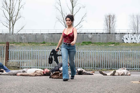十数人の男たちに一人で立ち向かっている女性ソニア( サルマ・ハエック)は、突然マイケルのサングラスとヘッドホンを奪い取り「一緒に来て!身を隠して!」と巻き込まれる。