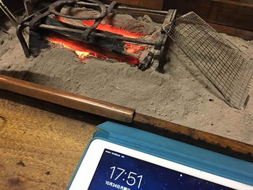 調査で冷えた身体を炭火で