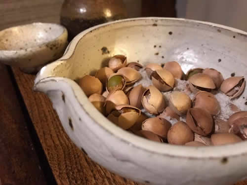 山古志・木籠の施設「郷見庵」で買った銀杏。 伊藤文夫さんの片口で。