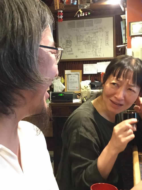 コロナ下の美術について語る私と小金沢さん(会津の夏酒付)