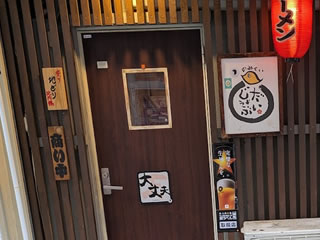 看板は見当たらず、ドアには小さく「大丈夫」の紙が。その右側には「ひよこ」の絵と一緒に「のみくいだいじょうぶ」とある・・コレが店の名前だろうか?