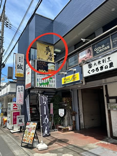 この武藤ビルにはパチンコの景品交換所TUCや居酒屋やガールズバー「GOLD CROSS」などが同居。ラーメン店「夢者」は2階の奥にある。