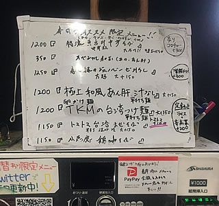 今年は開店10周年だという。三郷駅前に支店があったらしいが、すでに閉店している。周囲の環境を含めちょっとダークな雰囲気を漂わせるラーメン店である。