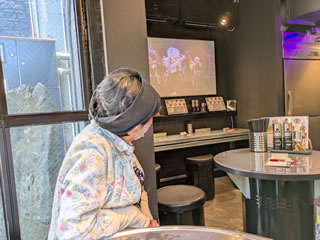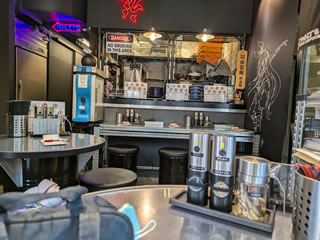 やらせ疑惑も少々匂うけれど、なにはともあれ入店だ。廊下から回り込んで店内へ。