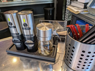 店の中はラーメン屋には見えず、どこか「異世界感」が漂う。まず調理料からしてこんな感じだ・・