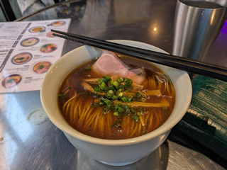 この「ショウユ」だしか食べていないのですが、彼ら(二人で調理している)は「ラーメンの新しい方向性」を目指しているのだと思います。