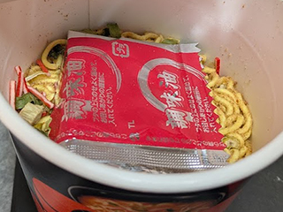 ふつー調味油は「お召し上がり直前に」入れるものだが、面倒なのでいつも入れてからお湯を投入している。