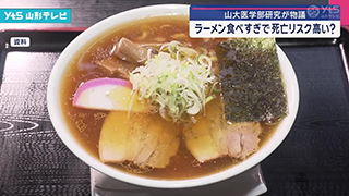 ◆「グッド!モーニング」2025年8月17日放送分より ラーメンの年間消費額3年連続日本一の山形市にある山形大学などの研究チームは、およそ6700人を対象に、ラーメンを食べる頻度と死亡リスクの関連を調査しました。 その結果、週に3回以上ラーメンを食べる人は喫煙や高血圧などとの関連が認められました。全体としては、統計的な優位性は得られなかったとしながらも、死亡リスクが1.52倍高まる傾向があることが分かりました。 特に、70歳未満の人やアルコールを飲む人、麺のスープを半分以上飲む人のリスクが高いということです。 研究チームは、食塩の過剰摂取を通して健康に悪影響を及ぼす恐れがあるため、ラーメンを食べる頻度や食べ方に注意することが健康維持のために重要だと指摘しています。 |