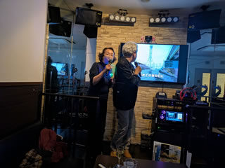 タケヒコオーナーと奥さんのミルクティーは、夜の宿を取って準備万端。そこに従兄弟のマサヒトが加わって4名のカラオケ会です。