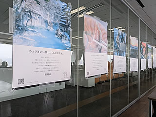 食堂横の見通しのいいガラス壁には、こんなポスターがズラリ・・『ちょうどいい旅、ふくしまステイ。」