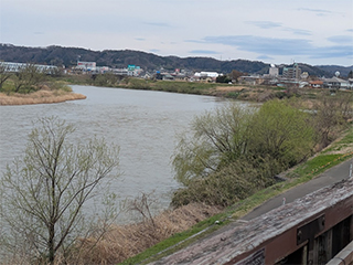 阿武隈川の方を見遣ると、川の音が聞こえてきます。