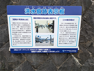 4枚あって、一番高くまで水が上がったのが「平成元年10月洪水」。その右下の二番目が「昭和61年8月洪水」・・コレについては更に下に詳しい解説板が。