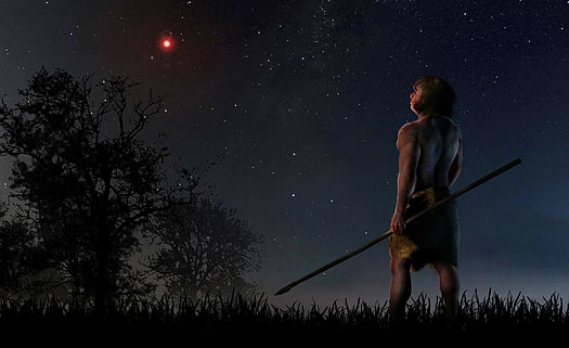 地球から「いっかくじゅう座」の方向へ17~23光年ほどの位置に「ショルツ星」という恒星が存在しているのだが、その遠ざかる「固有運動」を逆算すると、約7万年前に我らの太陽系をかすめて飛び去った可能性があるのだ。